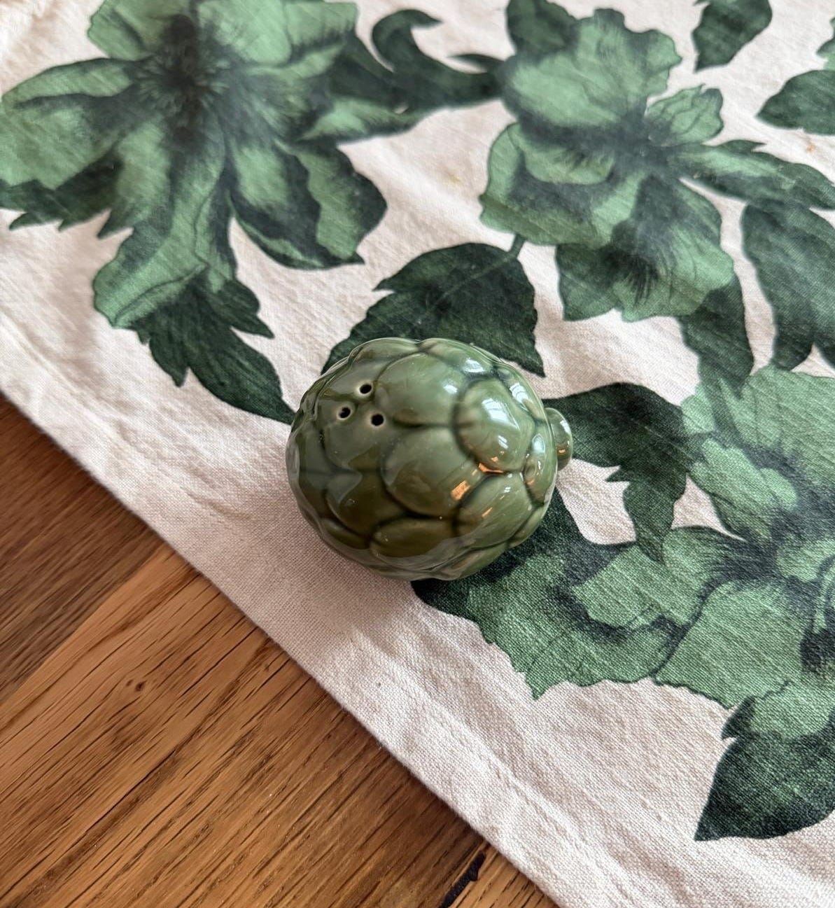 Solnițele în formă de anghinare de la H&M le avem și noi de vreo 7 ani. E amuzant că majoritatea oaspeților cred că sunt obiecte decorative și nici nu recunosc leguma (ceea ce e oarecum normal, căci noi românii nu ne-am născut cu ea). Sunt puțin diferit pictate și problema pe care o avem e că sarea nu iese ușor. Acum că ați menționat despre sare umedă, trebuie să verific să nu fie asta problema.