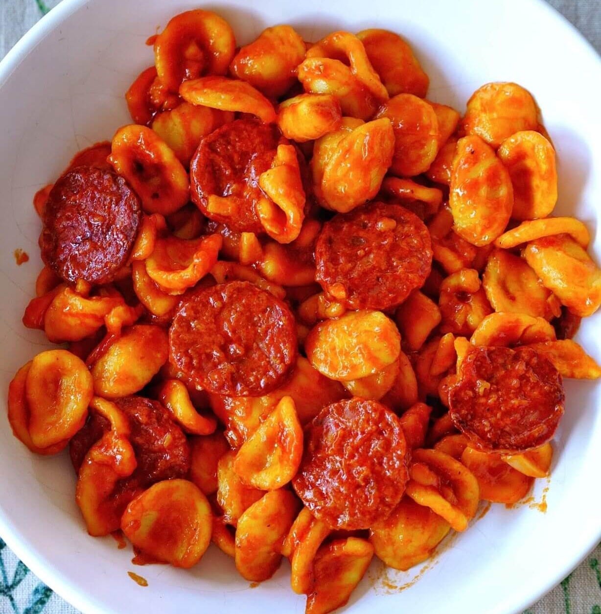 În categoria pește, am varianta asta de somon cu roșii (și la rețeta asta roșiile din extra-sezon sunt ajutate de condimentele incluse), pește cu năut în sos de roșii și somon la cuptor cu harissa. Mai pun pe lista asta și porcul cu ananas, linguini cu bacon la cuptor și paste rapide cu chorizo.